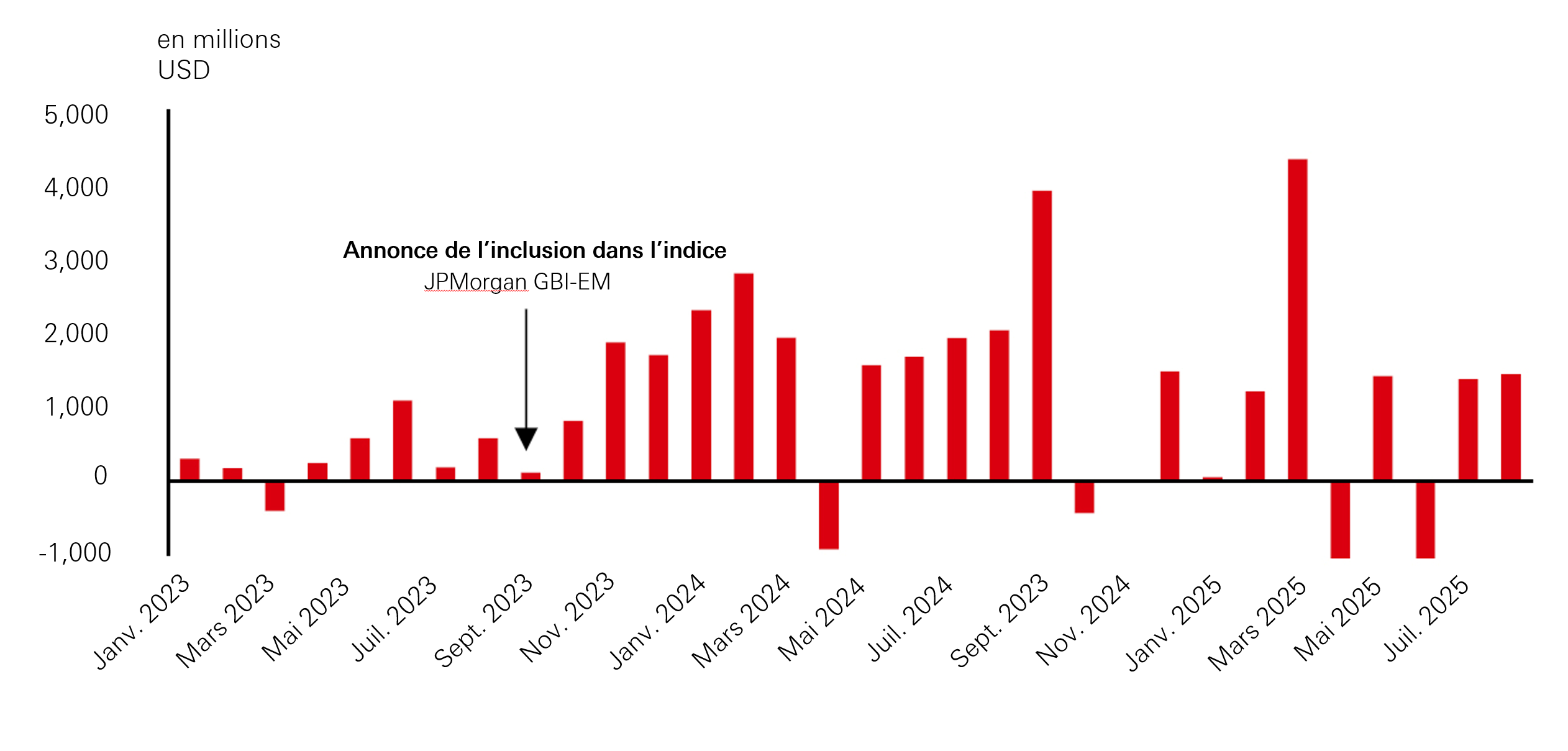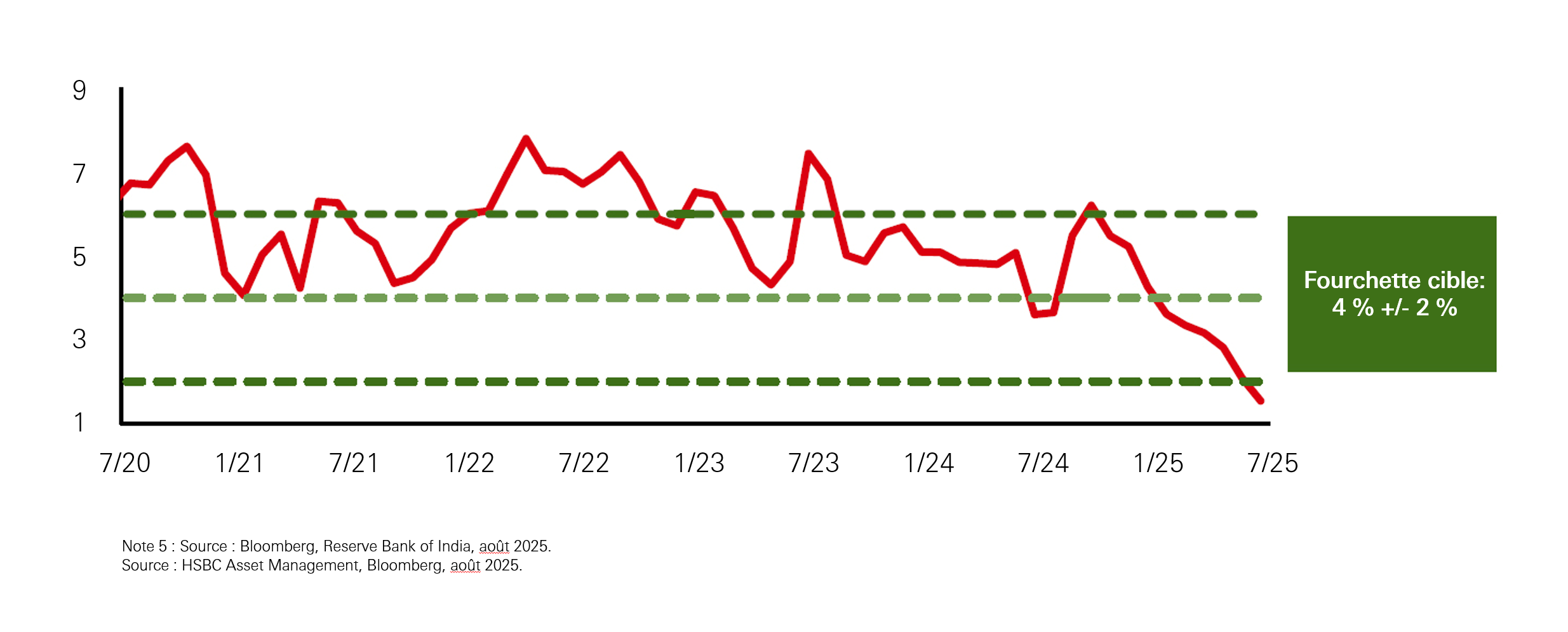 Note 5 : Source : Bloomberg, Reserve Bank of India, août 2025.
