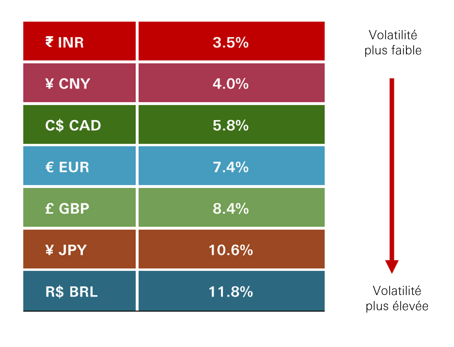 Devises vs USD, volatilité annualisée sur 3 ans7