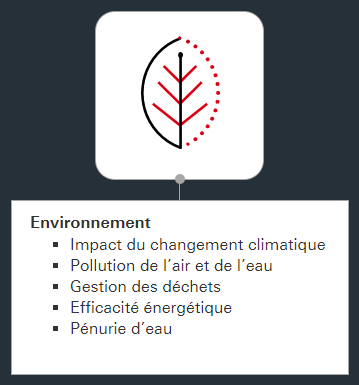 Les stratégies d'investissement qui intègrent les facteurs ESG sont en plein essor et représentent désormais plus d'un quart des actifs gérés par des professionnels à l'échelle mondiale. Exemples d’enjeux ESG communs :