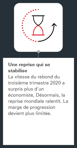 La vitesse du rebond du troisième trimestre 2020 a surpris plus d'un économiste. Désormais, la reprise mondiale ralentit. La marge de progression devient plus limitée. Partout sauf en Chine, l’activité économique n’a pas renoué avec ses niveaux de fin 2019.
