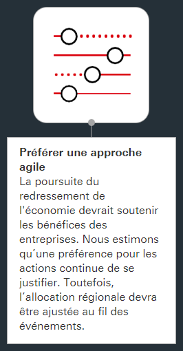 La convalescence de l’économie consistera en un ralentissement de la croissance mondiale après l’extraordinaire rebond de l’activité de ces six derniers mois. Cette expression fait également référence à nos anticipations de performances.