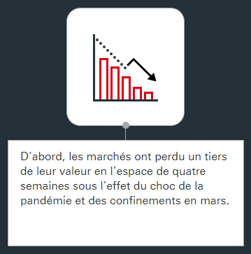 D’abord, les marchés ont perdu un tiers de leur valeur en l’espace de quatre semaines sous l’effet du choc de la pandémie et des confinements en mars.